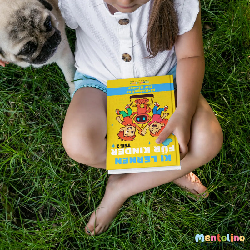 1x Buch „Mentolino Teil 1: Grundlagen der KI“, komplett farbiger Inhalt mit vielen Illustrationen & kindgerechten Darstellungen, farbiges Softcover.